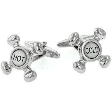 A unique and quirky gift idea, our top quality rhodium-plated silver faucet cufflinks set is hand-finished from clear gloss enamel and made as an exact replica of the standard “HOT” or “COLD” taps found in most kitchens and bathrooms.