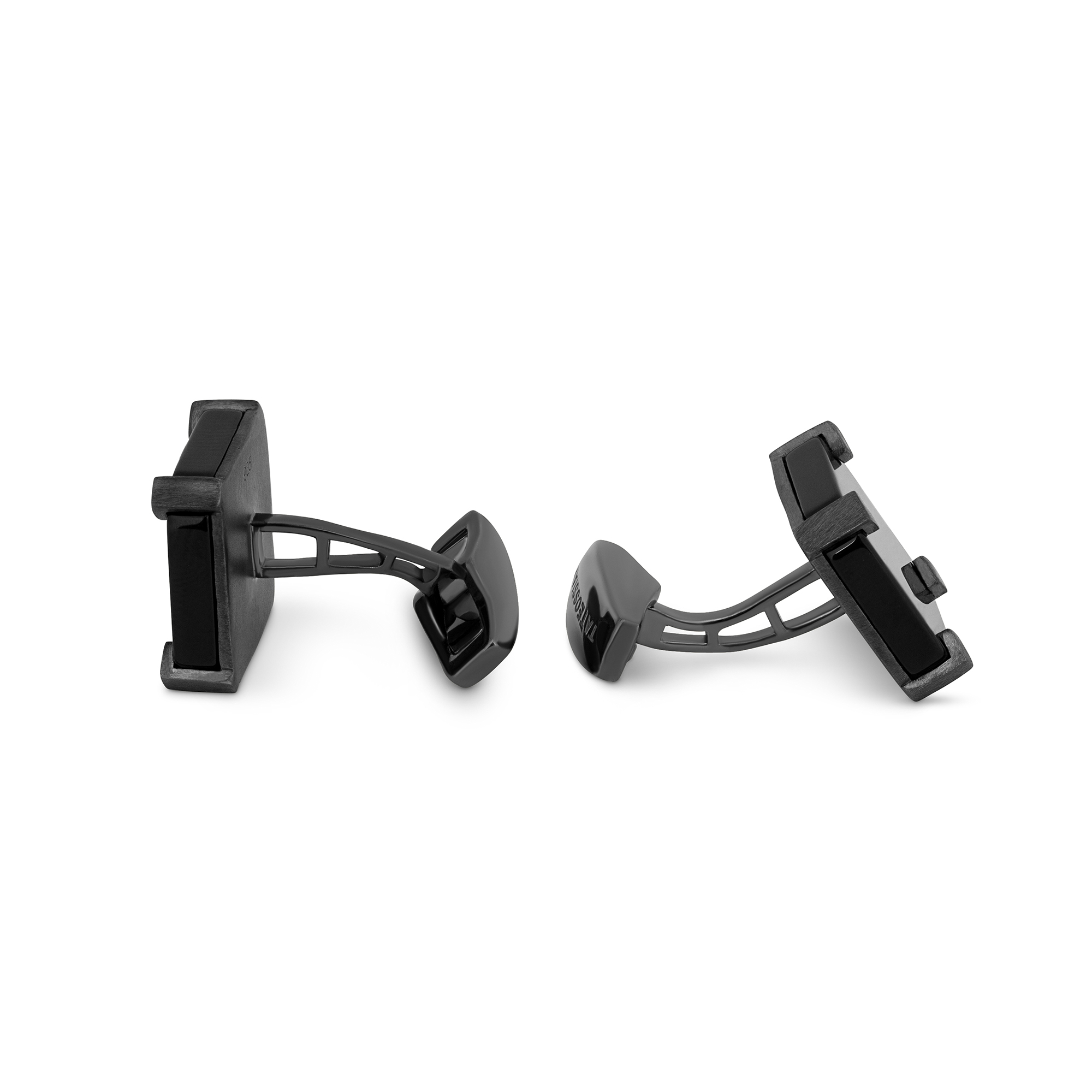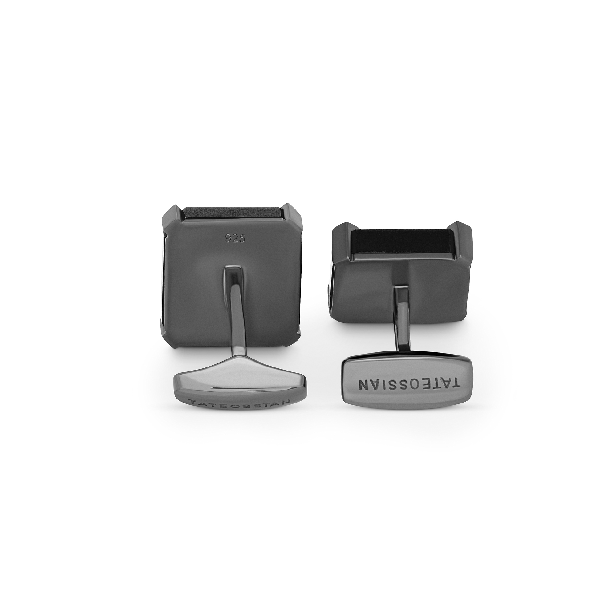 A bold statement of modern elegance, these Tateossian cufflinks feature an octagonal matte onyx stone, exuding understated luxury with its deep, velvety black finish. Encased in a meticulously crafted black rhodium-plated sterling silver claw setting, the design strikes the perfect balance between contemporary edge and timeless refinement. The geometric precision of the octagonal cut enhances the cufflinks’ sleek aesthetic, making them an impeccable choice for the discerning gentleman who values both sophistication and individuality. A distinguished addition to any formal ensemble, these cufflinks redefine modern luxury.