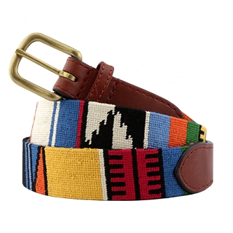 Smathers and Branson iconic needlepoint belt, as elegant as it is casual and fun, is the perfect accessory to help you stand apart from the crowd. This hand-stitched traditional belt is 1.25” in width and is finished with full grain, vegetable tanned Italian leather and a solid brass buckle.