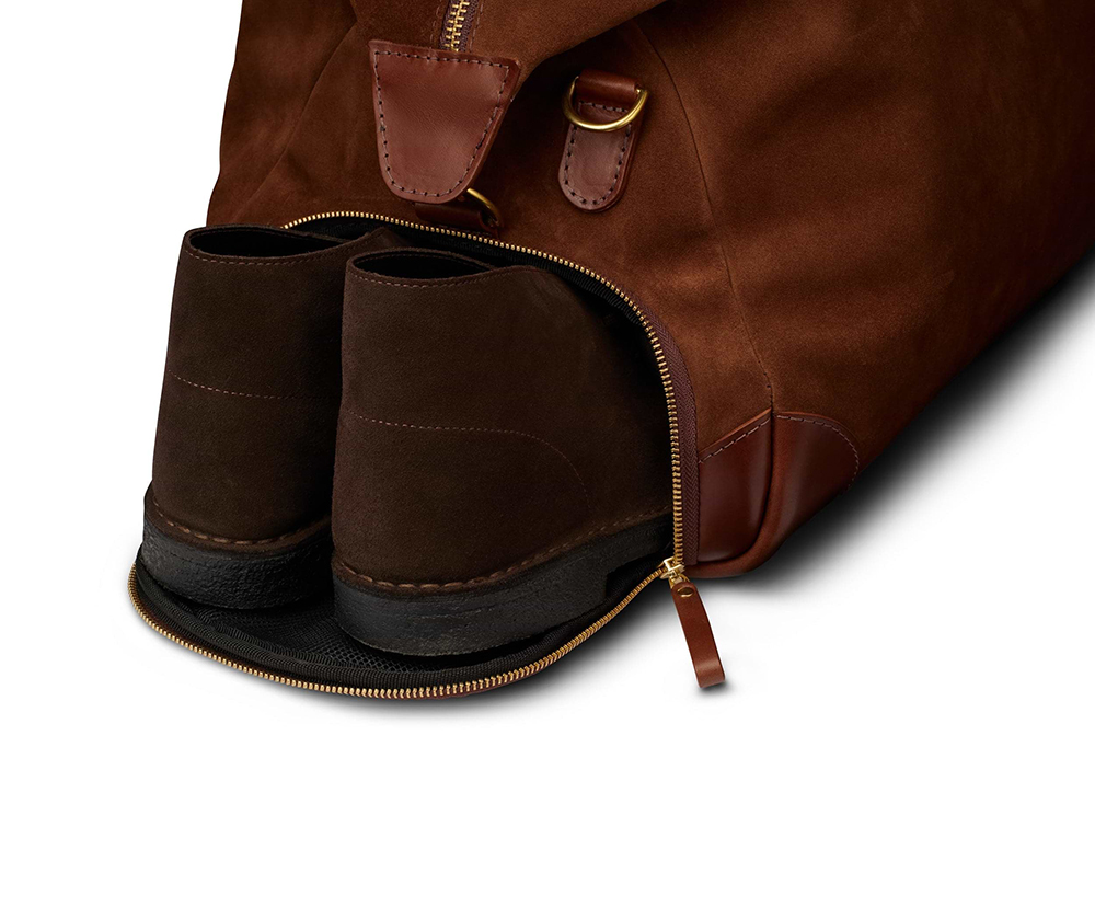 The Weekender, the first bag we ever made, is back with the touch of suede. With 42 litres of capacity, a fully padded laptop sleeve and two separate shoe compartments, we’ve handmade this weekend bag in England from waterproof brown Italian suede. Soft in hand, but hard wearing as any piece of leather, our suede is a juxtaposition of luxury and performance and made to go the distance.