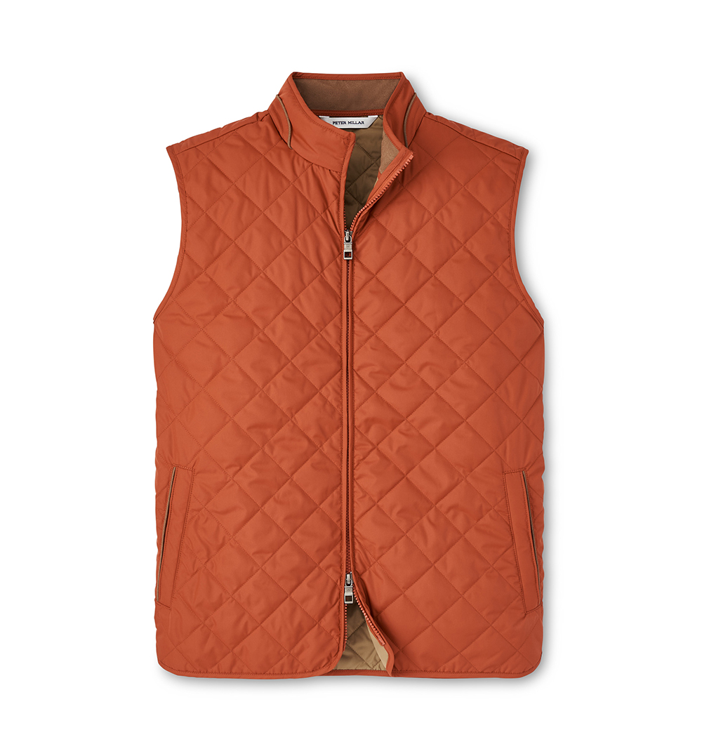 The Peter Millar Essex Vest in Burnt Orange blends sustainable performance with refined everyday style. Crafted from 100% recycled polyester for both the main body and lining, it features an insulating fill of 90% recycled polyester and 10% polyester, delivering reliable warmth without added bulk. Designed to be windproof and water-resistant, it offers protection and comfort in changing weather. With its modern silhouette, functional details, and eco-conscious construction, this outerwear vest reflects Peter Millar’s commitment to innovation, sustainability, and polished versatility.