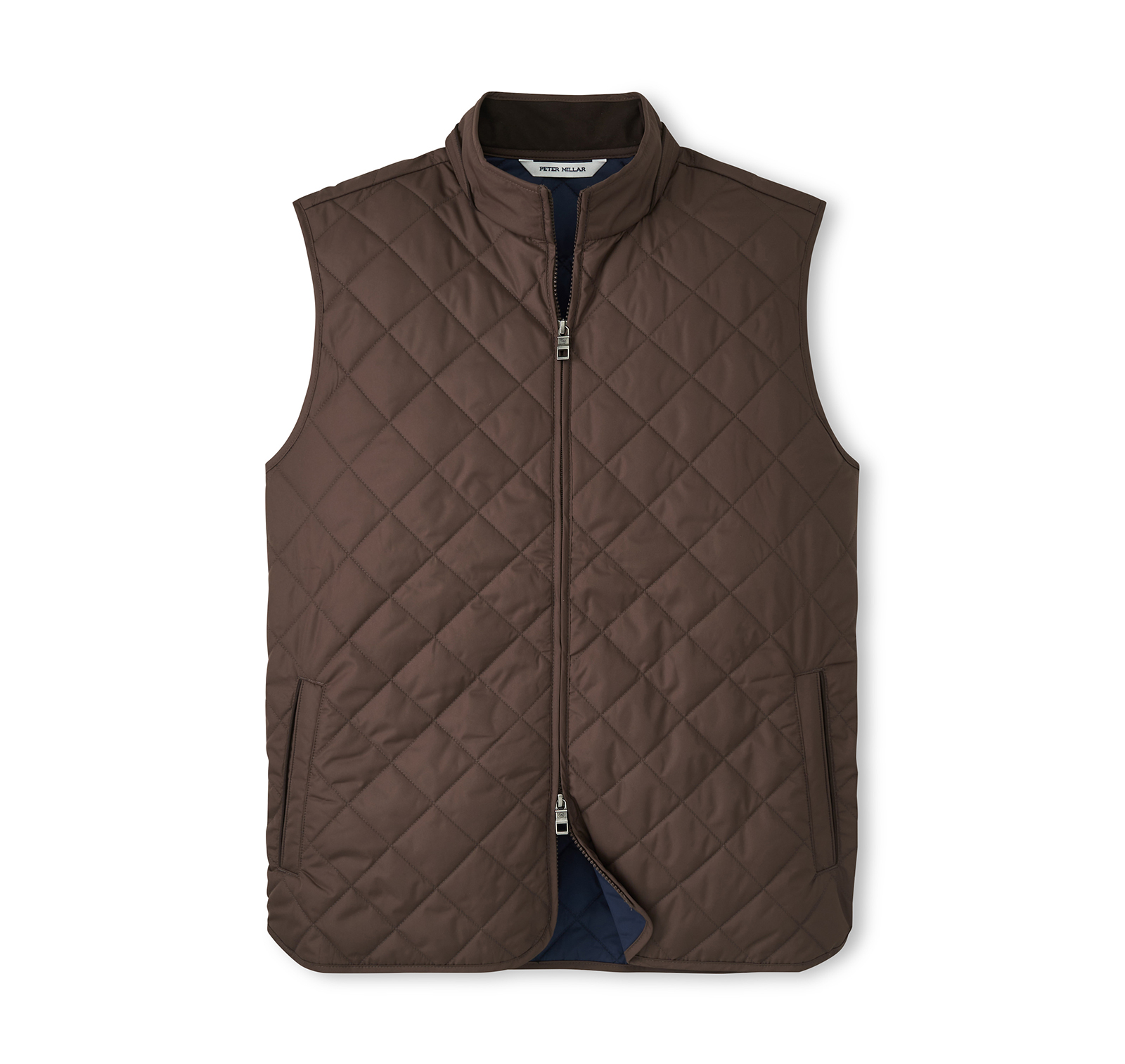 The Peter Millar Essex Vest in brown offers a perfect balance of performance and refined style. Designed for warmth, it features a main body and lining made from 100% recycled polyester, with a fill of 90% recycled polyester and 10% polyester for lightweight insulation. Windproof and water-resistant, it provides protection against the elements while maintaining a sleek, versatile look. Crafted with sustainability in mind, this vest is an ideal layering piece for cool-weather comfort and modern functionality.