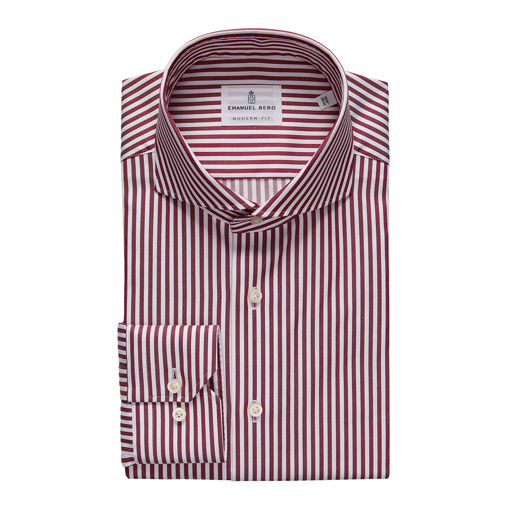 This Emanuel Berg dress shirt showcases refined craftsmanship and timeless style. Designed in a dark red striped pattern, it’s made from 100% premium cotton for a smooth, breathable feel and exceptional comfort. A polished choice for both professional and evening settings, it pairs effortlessly with tailored suits or sport coats.