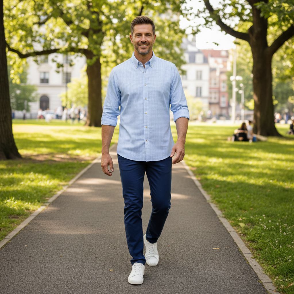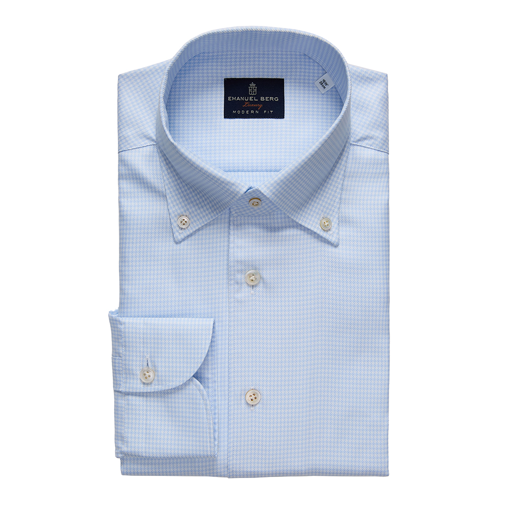 Crafted in Poland from the finest 100% cotton, this Emanuel Berg dress shirt combines modern refinement with timeless style. The light blue houndstooth pattern offers subtle texture and visual depth, while the button-down collar lends versatile elegance that works effortlessly with both suits and sport coats. Designed in a modern fit, it provides a tailored silhouette that’s comfortable and sophisticated. A distinguished piece that reflects Emanuel Berg’s renowned craftsmanship and Norton Ditto’s commitment to luxury menswear.