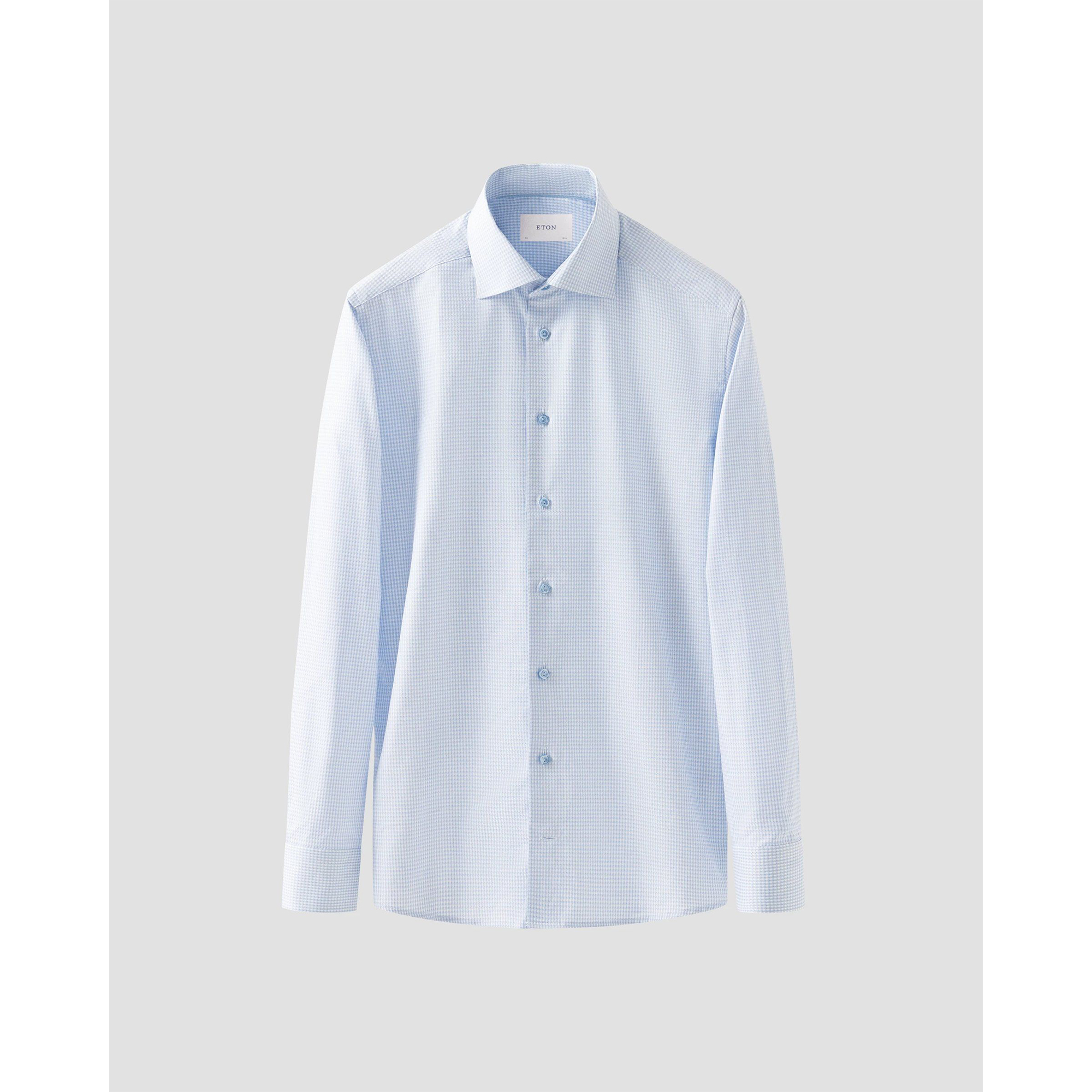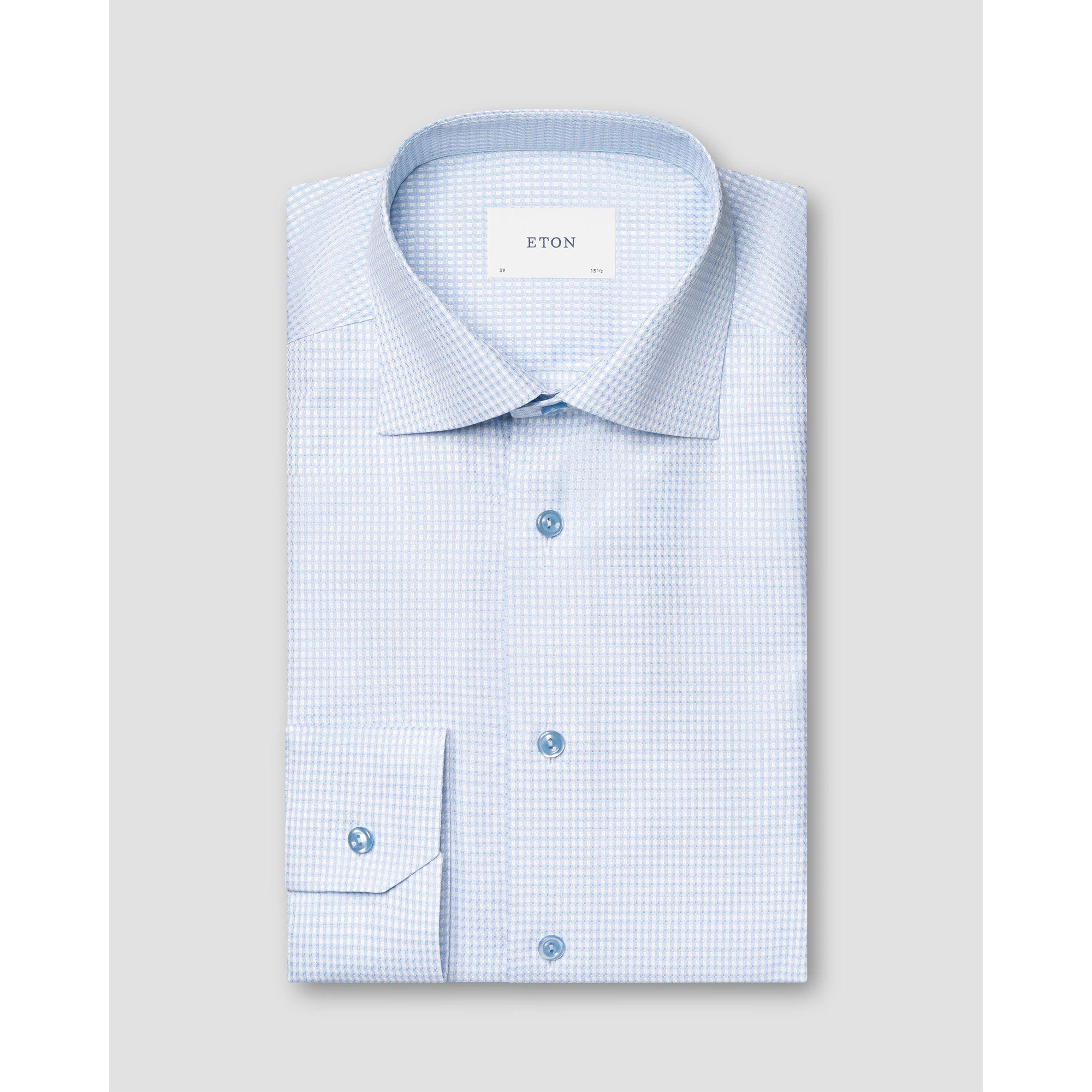 The light blue hue exudes understated elegance, making it a versatile staple that transitions effortlessly from boardroom meetings to evening affairs. Featuring a tailored yet comfortable fit, a refined spread collar, and meticulously finished French seams, this shirt showcases Eton’s dedication to impeccable craftsmanship.
