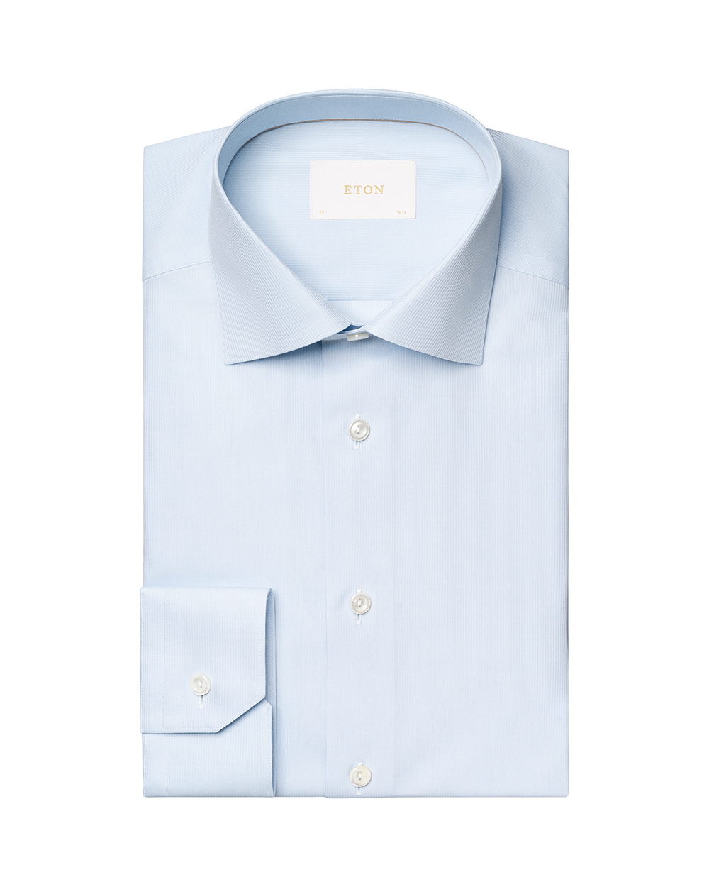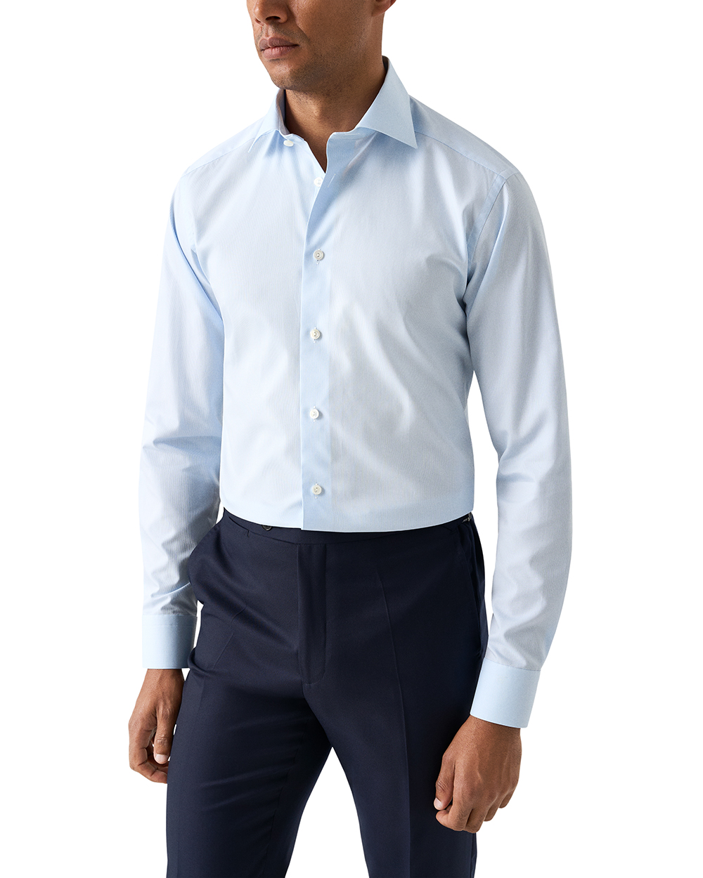 This Eton contemporary dress shirt combines modern tailoring with a refined, textured finish. Cut in the Contemporary fit, it offers a clean silhouette with comfortable ease. The cut away spread collar adds a sharp, versatile frame, while the single cuff keeps the design crisp and understated. Crafted from Elevated Pique in 100% cotton, the fabric provides subtle depth, softness, and a polished, elevated look. In classic light blue, this shirt delivers timeless versatility and reflects Eton’s commitment to quality and sophisticated style.