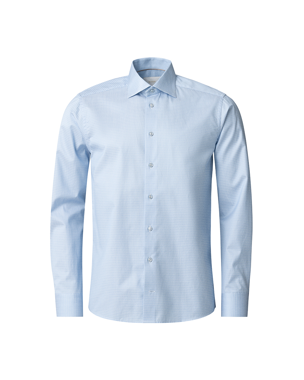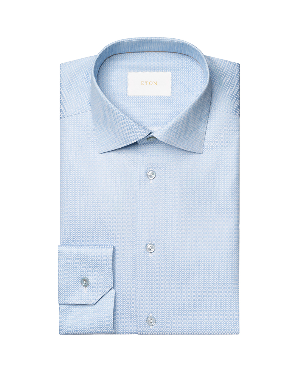This Eton contemporary dress shirt brings refined texture and modern tailoring together in a versatile, polished design. Cut in the Contemporary fit, it offers a clean silhouette with comfortable ease. The cut away spread collar provides a sharp, contemporary frame, while the single cuff maintains a crisp, understated finish. Crafted from Elevated Pique in 100% cotton, the fabric adds subtle dimension and a smooth, elevated hand feel. In classic light blue, this shirt delivers timeless sophistication and showcases Eton’s signature quality and craftsmanship.