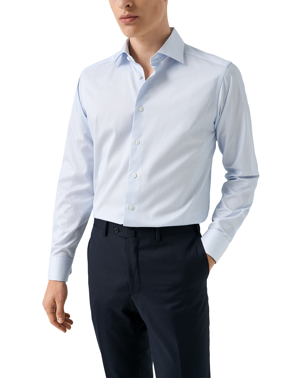 Part of Eton’s collection, this light blue dress shirt delivers timeless sophistication with a modern edge. Crafted from 100% premium cotton, it offers exceptional comfort, breathability, and a refined finish. The contemporary fit provides a clean, tailored silhouette, while the cutaway spread collar allows effortless styling with or without a tie. Designed with single cuffs convertible for cufflinks, this shirt transitions seamlessly from professional settings to formal occasions. A seasonal essential that reflects Eton’s commitment to craftsmanship, available at Norton Ditto.