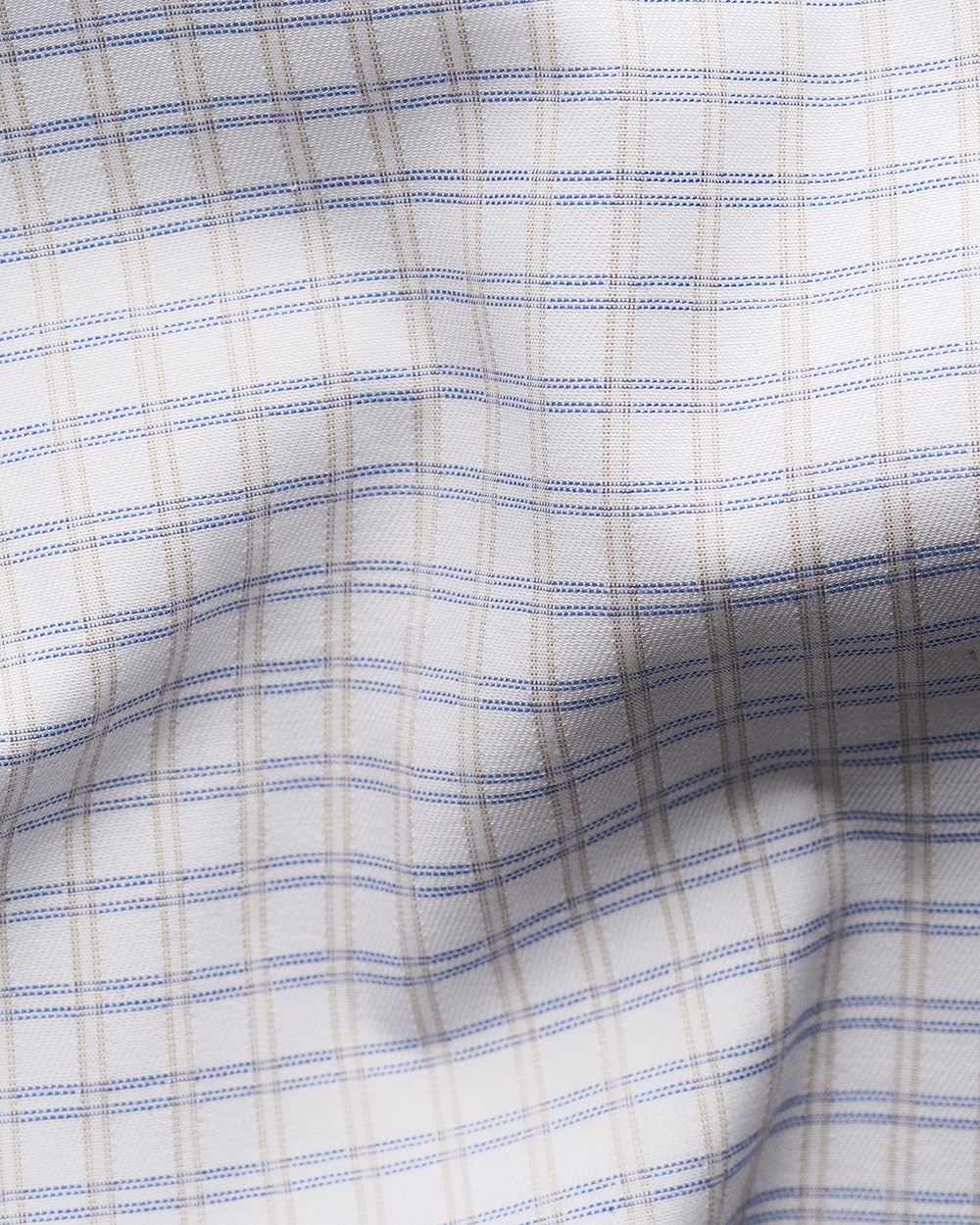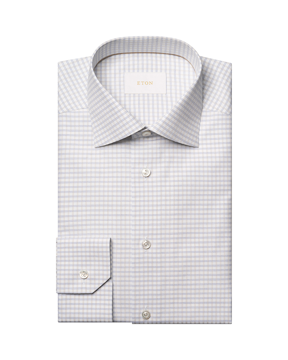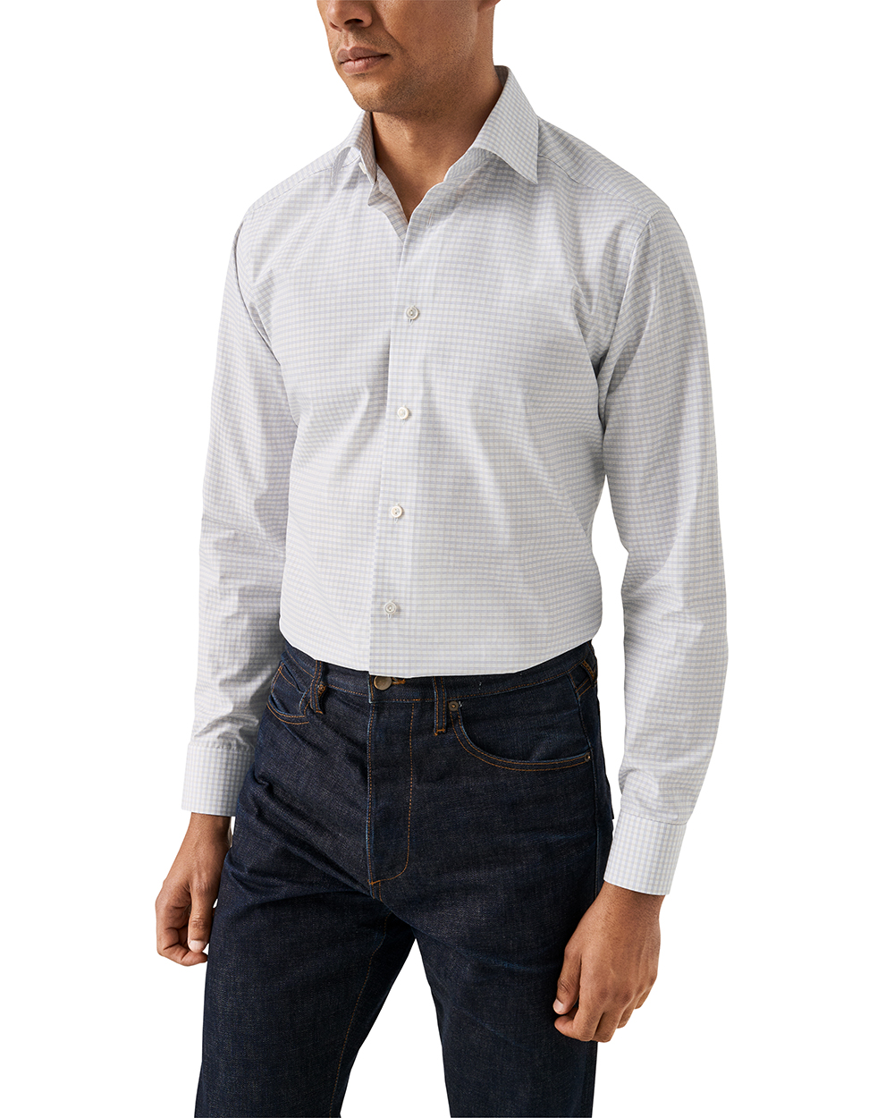This Eton contemporary dress shirt offers a refined blend of modern sophistication and elevated texture. Tailored in Eton’s contemporary fit, it features a cut away spread collar and single cuffs for a clean, polished silhouette. Crafted from Eton’s Elevated Piqué fabric, it provides a subtle richness and refined structure, while the light blue graph check pattern adds a touch of understated style. Made from 100% premium cotton, this shirt delivers exceptional comfort, breathability, and timeless versatility—perfect for both professional and smart-casual settings.