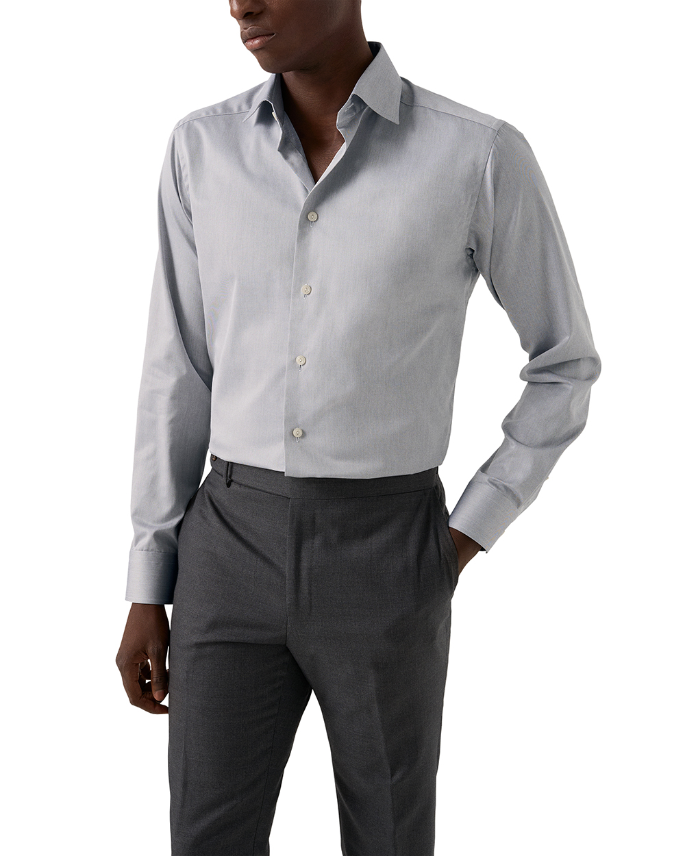 A modern essential with understated elegance, this grey dress shirt from Eton is crafted from the brand’s renowned signature twill fabric. Made of 100% premium cotton, it offers a smooth finish, natural luster, and exceptional comfort. The contemporary fit ensures a clean, tailored silhouette, while the cutaway spread collar provides versatility for both business and evening wear. Finished with single cuffs convertible for cufflinks, this shirt is a refined staple that transitions effortlessly across occasions. Available now at Norton Ditto.