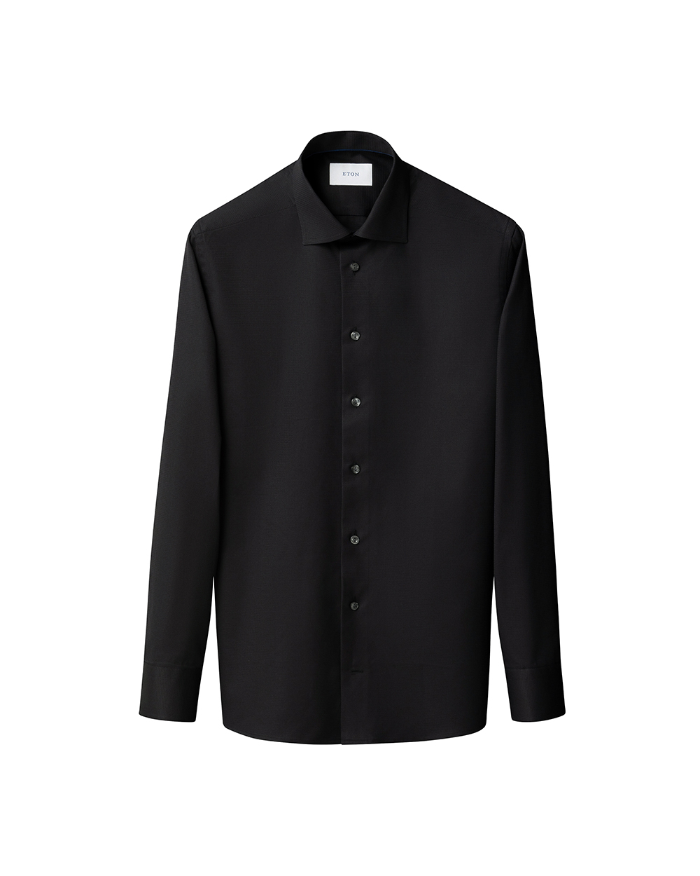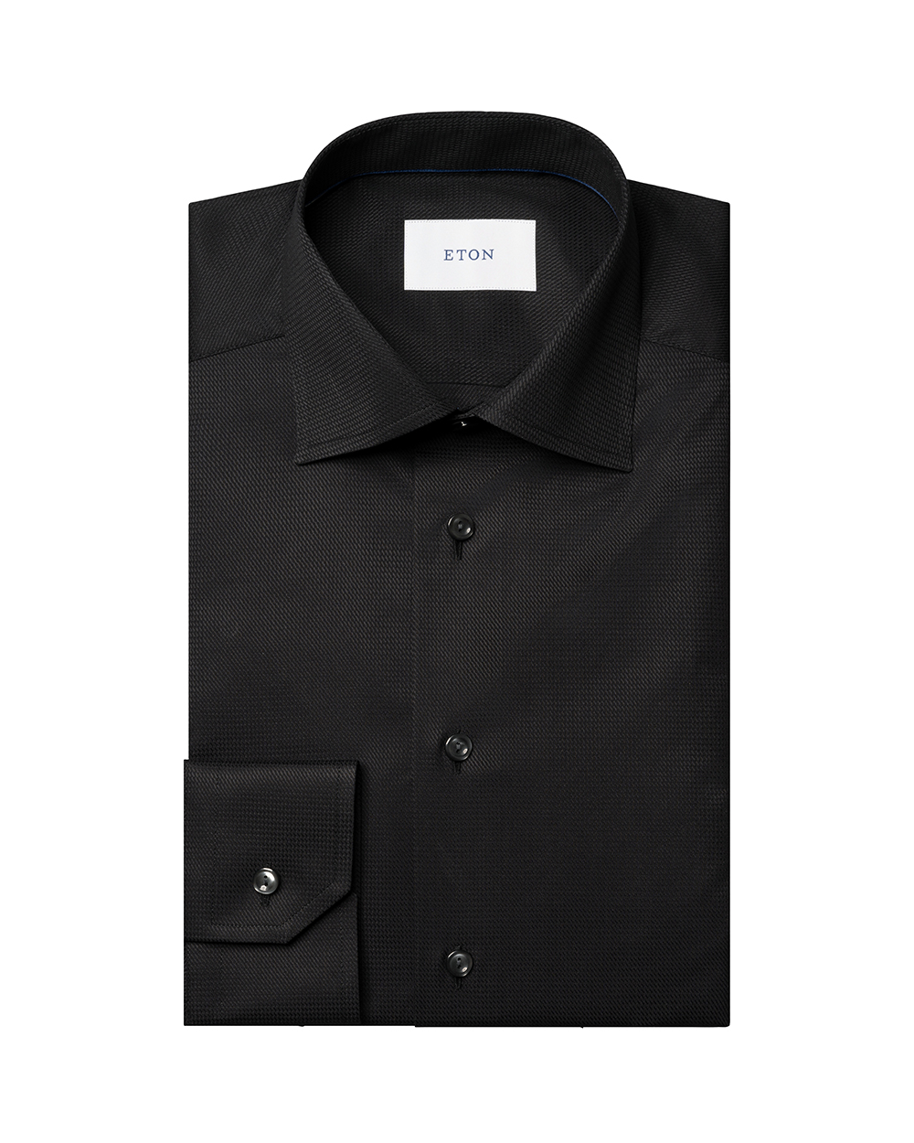 This Eton slim dress shirt brings modern sophistication to a timeless black design. Tailored in the Slim fit, it offers a clean, streamlined silhouette with a sharp, contemporary presence. The cut away spread collar adds versatility for both open-collar looks and broader tie knots, while the single cuff keeps the finish crisp and understated. Crafted from a dobby weave in 100% cotton, the fabric adds subtle texture and depth without compromising softness or breathability. Refined and versatile, this shirt reflects Eton’s signature craftsmanship and polished elegance.