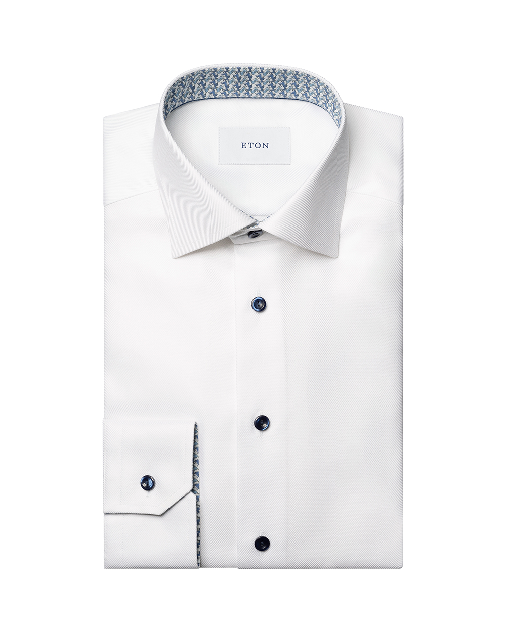 Clean, sharp, and adaptable, this Eton white dress shirt is a modern classic designed for every occasion. The textured twill fabric lends subtle dimension, while its 100% cotton construction ensures breathable comfort and lasting quality. The cutaway spread collar frames both ties and open collars with ease, and the single cuffs with convertible cufflink option provide flexibility from business hours to formal evenings. A timeless staple of refined style, crafted with Eton’s renowned attention to detail and available at Norton Ditto.