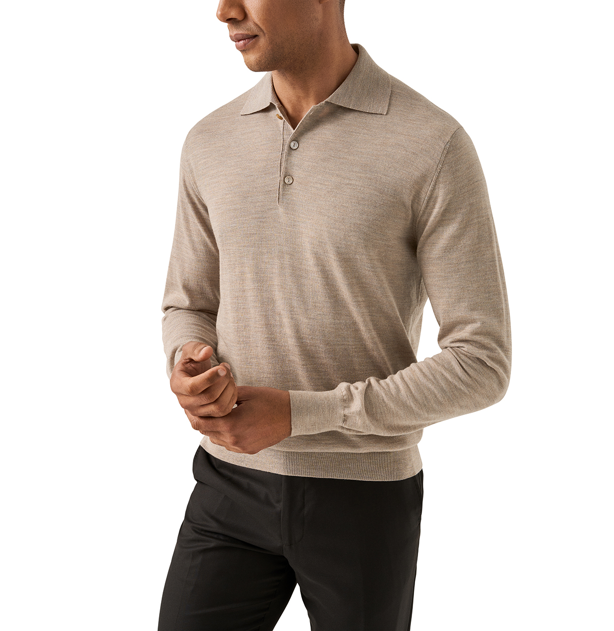 This Eton knit polo blends casual elegance with luxurious comfort. Crafted from 100% Merino wool, it offers a soft, breathable feel and a refined drape that elevates everyday style. The beige hue adds understated sophistication, making it an effortlessly versatile piece for both relaxed and refined looks. With clean tailoring and premium craftsmanship, this polo reflects Eton’s dedication to timeless quality and modern refinement.