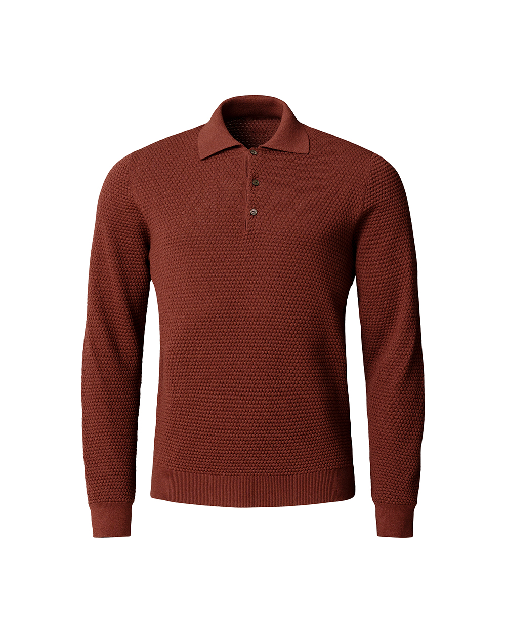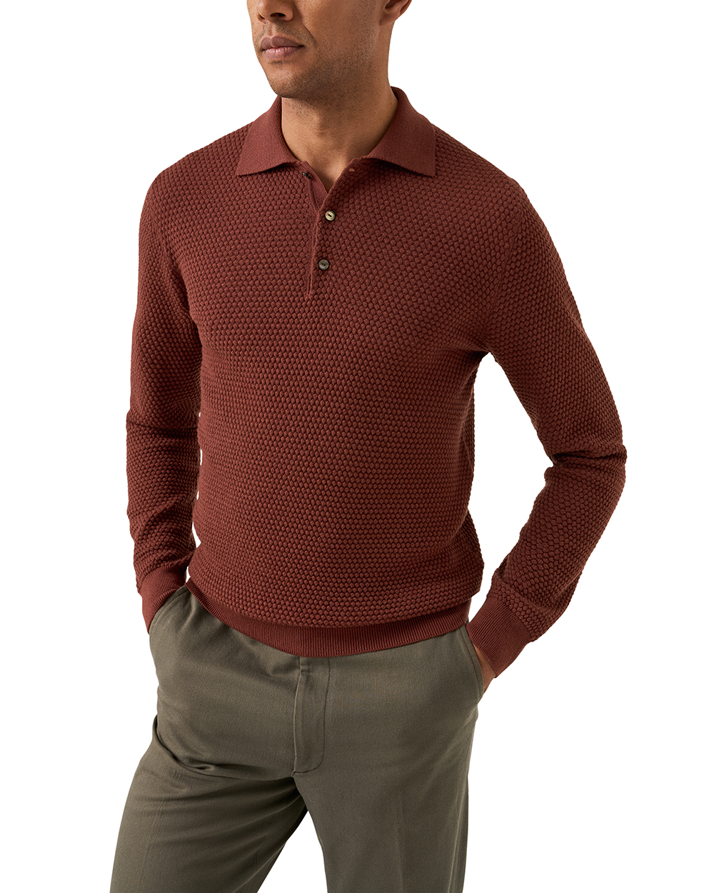 A luxurious take on a casual classic, this Eton knit polo is crafted from 100% fine merino wool for exceptional softness, breathability, and natural temperature regulation. Designed with a knitted collar and long sleeves, it balances relaxed ease with refined sophistication. Presented in a red hue, this polo transitions seamlessly from weekday layering to polished leisure, embodying Eton’s commitment to timeless style and modern elegance.
