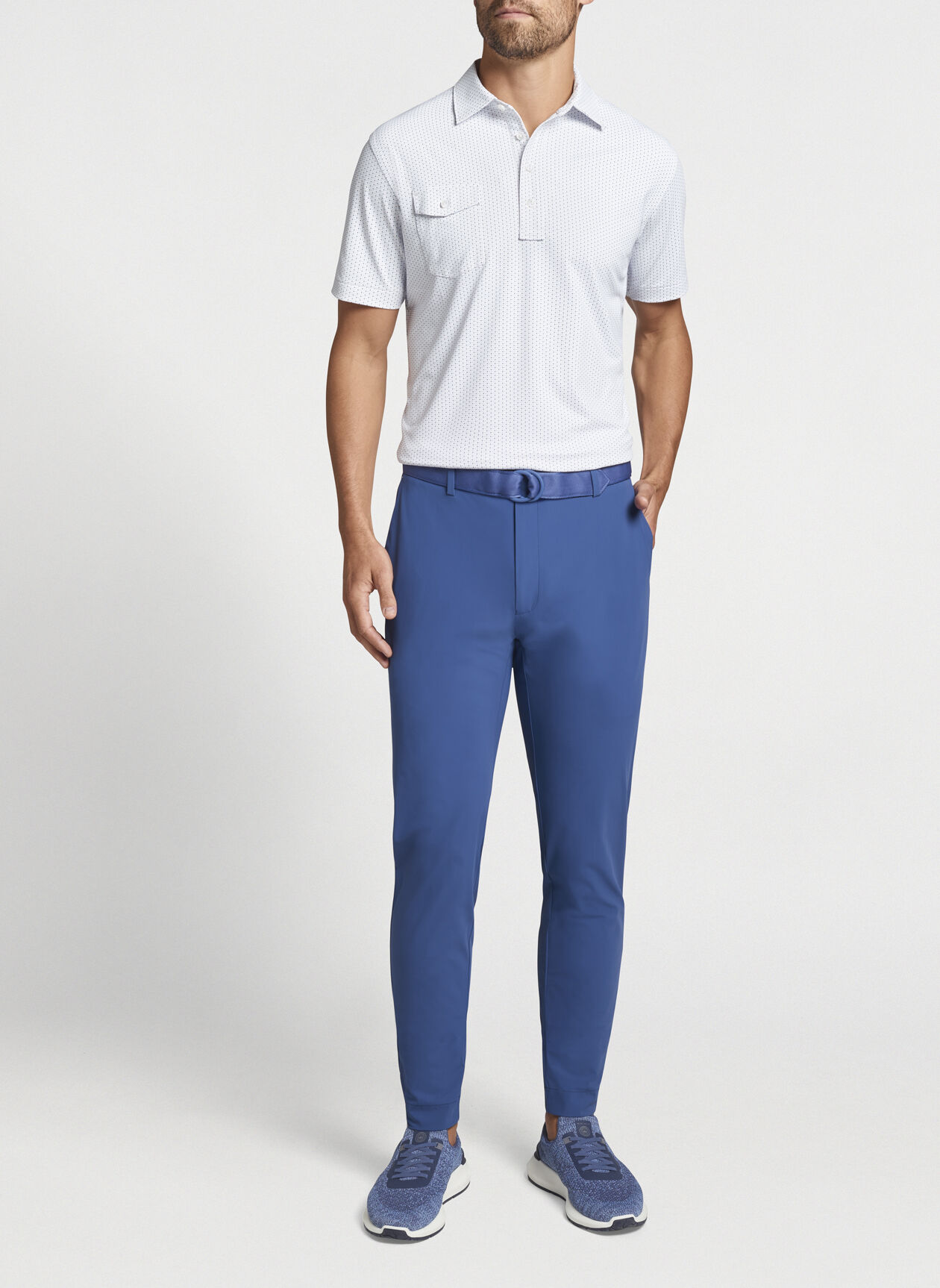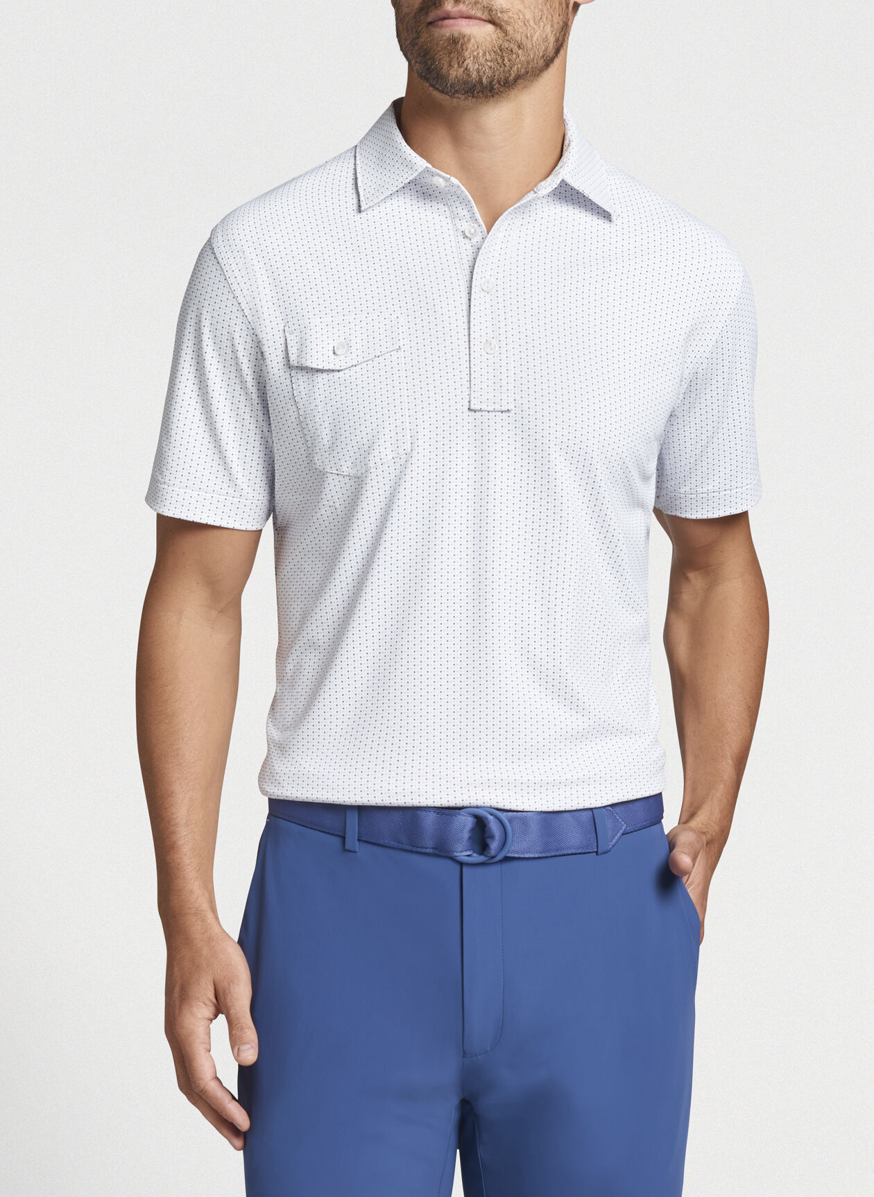 This polo is crafted to deliver enduring comfort in a sleek style that seamlessly transitions off course. It’s constructed from an antimicrobial performance fabric that features moisture-wicking, four-way stretch and easy-care benefits. UPF 50+ sun protection provides added comfort and coverage. Finished with a Kelly hard collar and a two-button placket.