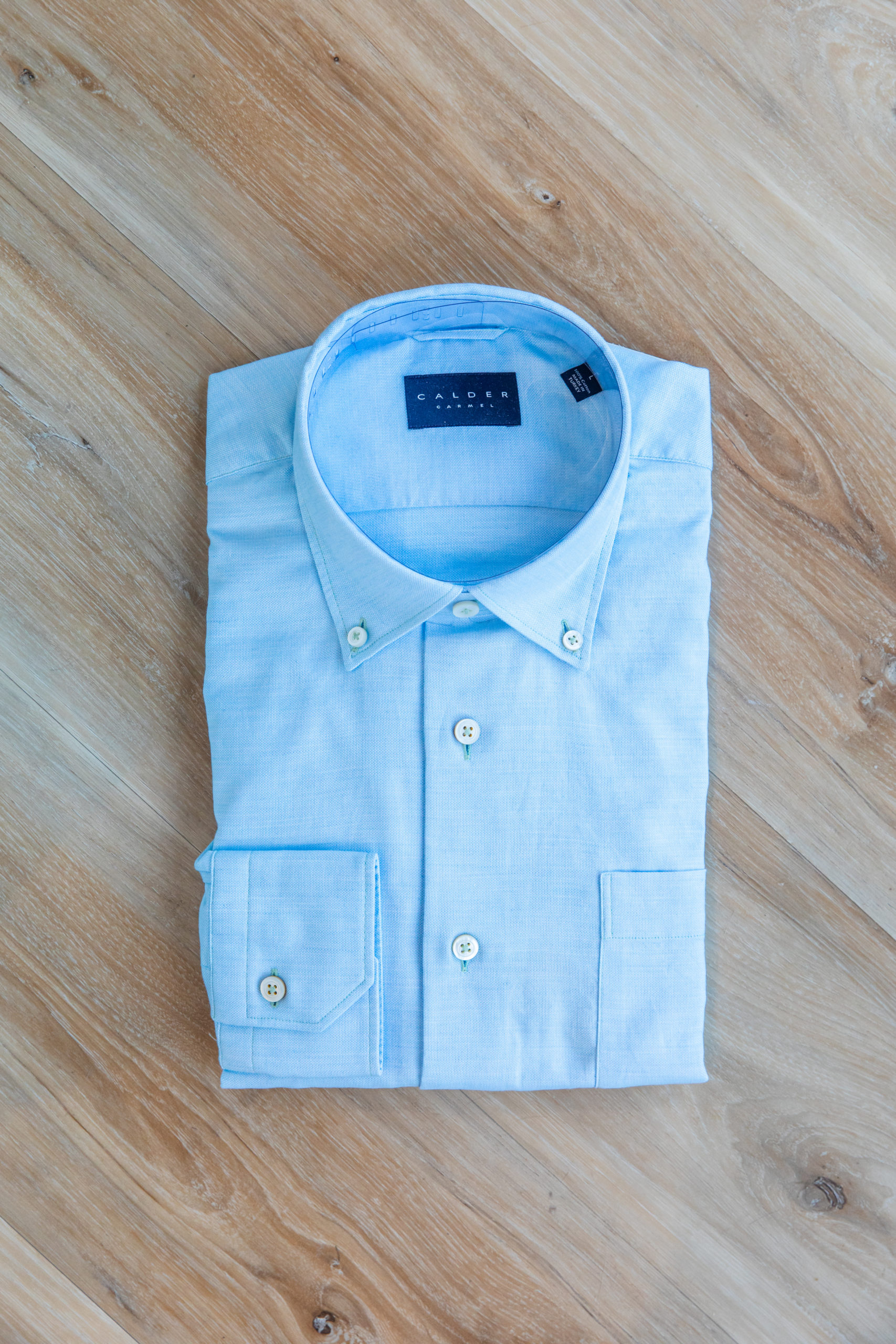 CALDER Carmel Button Down Long Sleeve Sport Shirt in Turquoise
