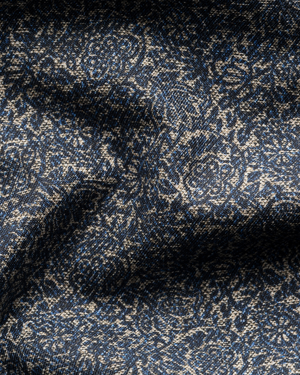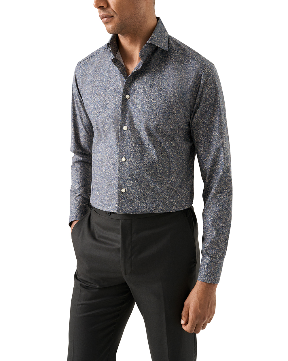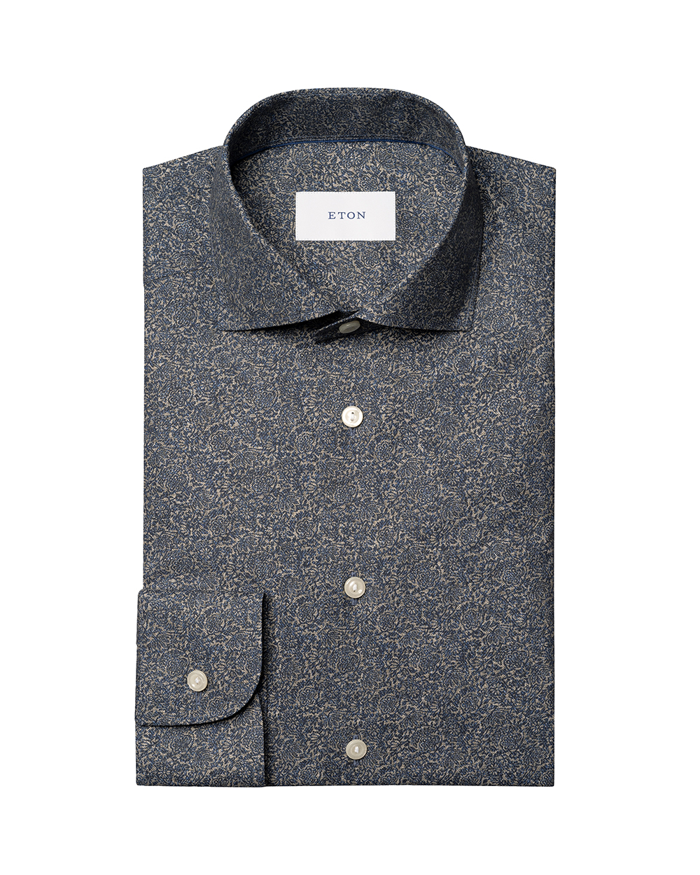 This Eton long sleeve sport shirt showcases refined elegance through subtle detail. Tailored in a contemporary fit, it features a wide spread collar and rounded single cuffs for a polished, versatile look. The blue tonal ornamental pattern, rendered on Eton’s signature twill fabric, adds quiet sophistication and visual depth. Crafted from 100% cotton, it offers a smooth, luxurious feel with crisp structure—perfect for elevating both smart-casual and dressed-up ensembles.
