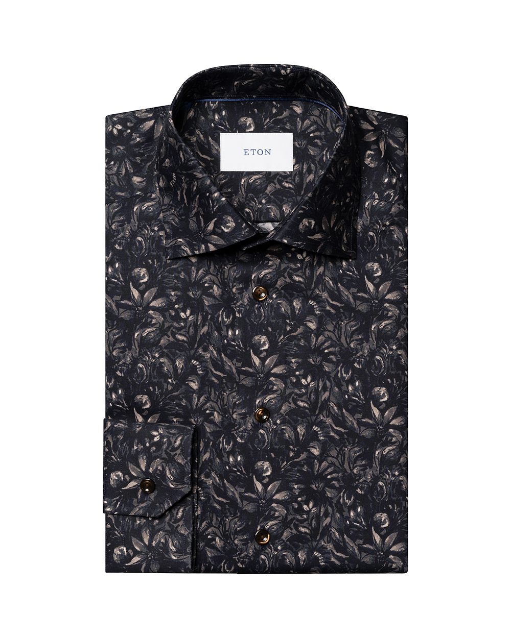 This Eton long sleeve sport shirt brings refined personality to sophisticated casual dressing. Cut in a contemporary fit, it features a cut away spread collar and single convertible cuffs for versatile styling. The rich brown floral pattern, rendered on Eton’s signature twill fabric, adds depth and character while maintaining a smooth, luxurious feel. Crafted from 100% cotton, it blends comfort with impeccable structure—perfect for the modern wardrobe seeking elegance with individuality.