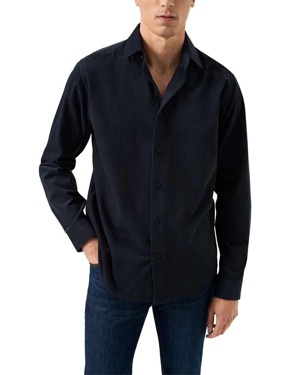 This navy sport shirt from Eton brings a modern twist to classic corduroy. Crafted from 100% premium cotton, the fine corded texture offers both softness and depth, making it an ideal layer for cooler seasons. With its long-sleeve design and Eton’s signature attention to fit and detail, it transitions effortlessly from casual sophistication to relaxed elegance. A timeless essential that elevates everyday dressing with understated luxury.