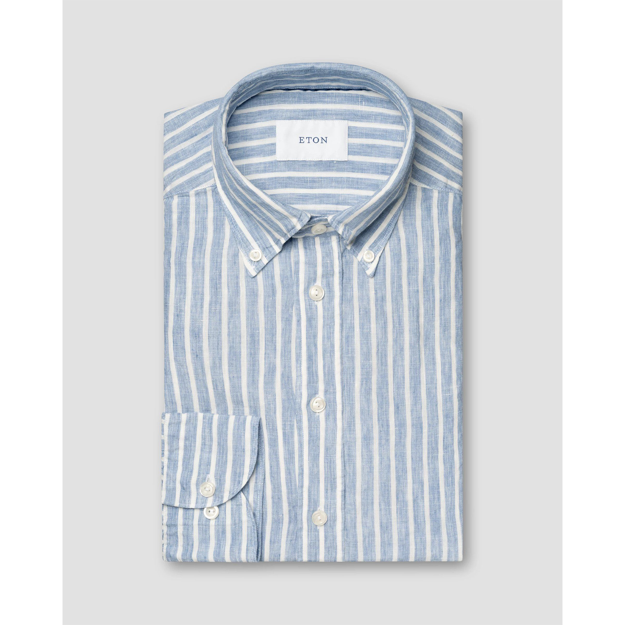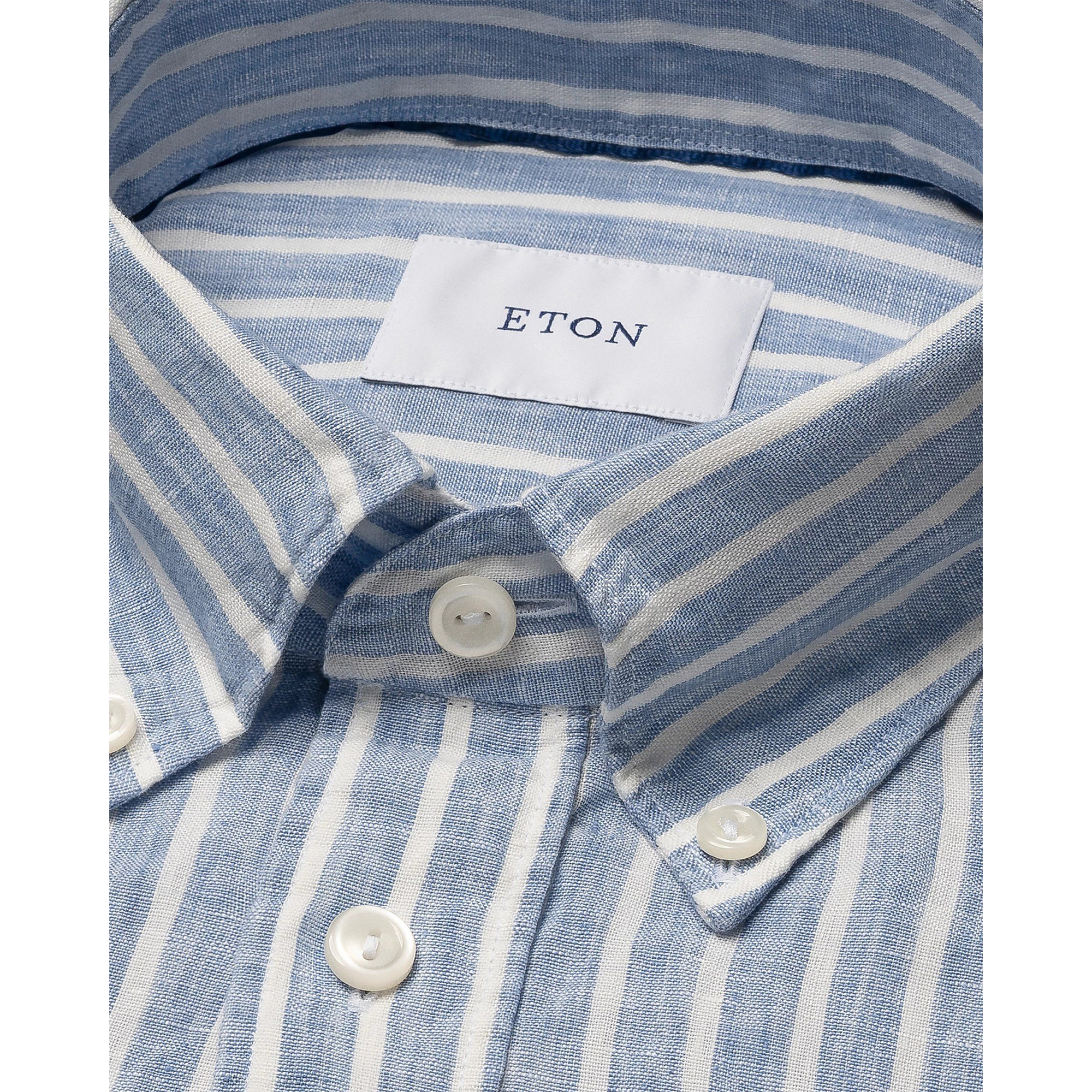 A warm-weather essential with impeccable tailoring, this sport shirt from Eton is crafted from 100% linen for lightweight breathability and a natural, textured hand. The soft light blue base is accented with classic vertical stripes, creating a clean, refined look that transitions effortlessly from relaxed days to polished evenings. Designed with Eton’s signature precision and attention to detail, it offers a relaxed yet sophisticated silhouette, perfect for coastal getaways, casual Fridays, or elevated everyday wear.