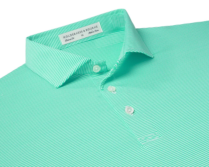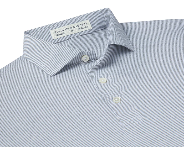 The Perkins features a modern two-color feed stripe pattern for understated good looks. Lightweight yarn-dyed performance fibers offer excellent hand feel and warm weather performance.