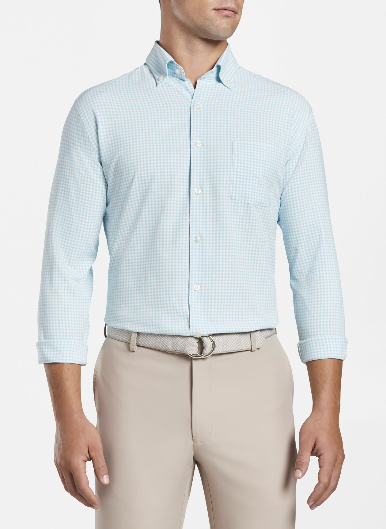 This innovative shirt is designed with a specially textured stretch microfiber that captures a cotton-like feel while delivering the four-way stretch, moisture-wicking and easy-care benefits you’d expect from performance fabric. UPF 50+ sun protection offers added comfort and coverage during sun-soaked days out on the town. It’s finished with a button-down collar, chest pocket and double-button barrel cuffs. Color: Porcelain Blue