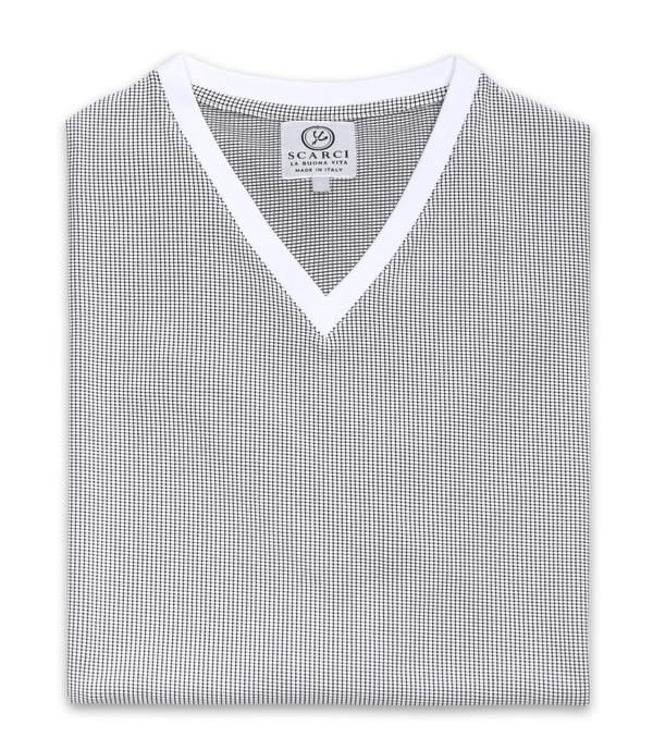 SCARCI Amalfi V Neck T Shirt is one of the most unique fabrics in their collection, and is truly something special. This is a t shirt that you have to touch to believe. With its soft hand and contrast texture, this shirt has many strangers inconspicuously bumping into you to feel you or casually asking to put their hands on you.