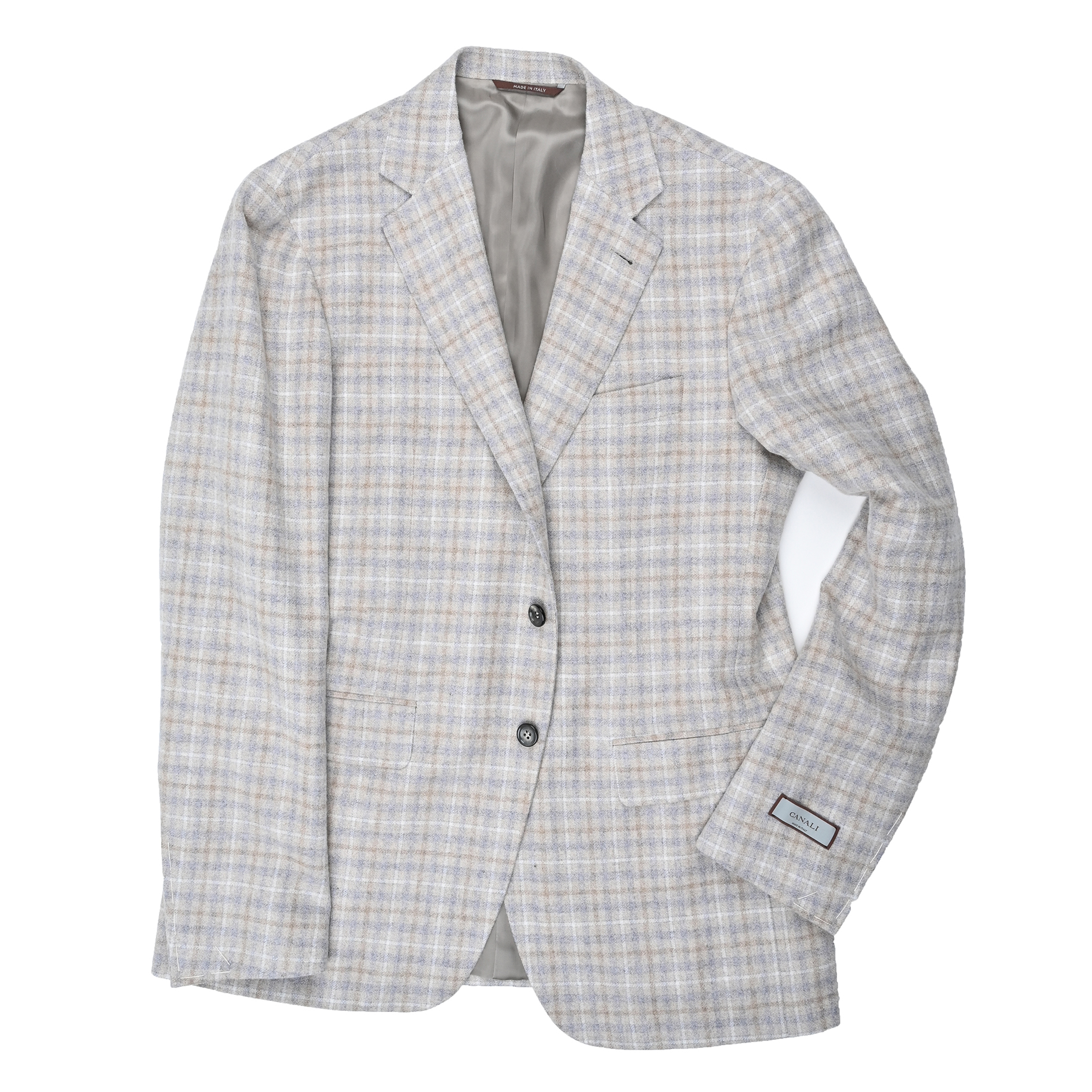 Made in Italy, this Canali Kei sport coat embodies the brand’s signature balance of craftsmanship, comfort, and contemporary elegance. Tailored from a refined blend of 77% wool, 19% polyamide, and 4% silk, it offers a soft yet resilient structure with a smooth, luxurious hand. The light grey plaid pattern lends a modern and understated sophistication, while the unstructured Kei design ensures effortless movement and a relaxed, natural drape. Perfectly suited for refined business attire or polished casual wear, this sport coat reflects Canali’s dedication to timeless Italian style and impeccable tailoring.