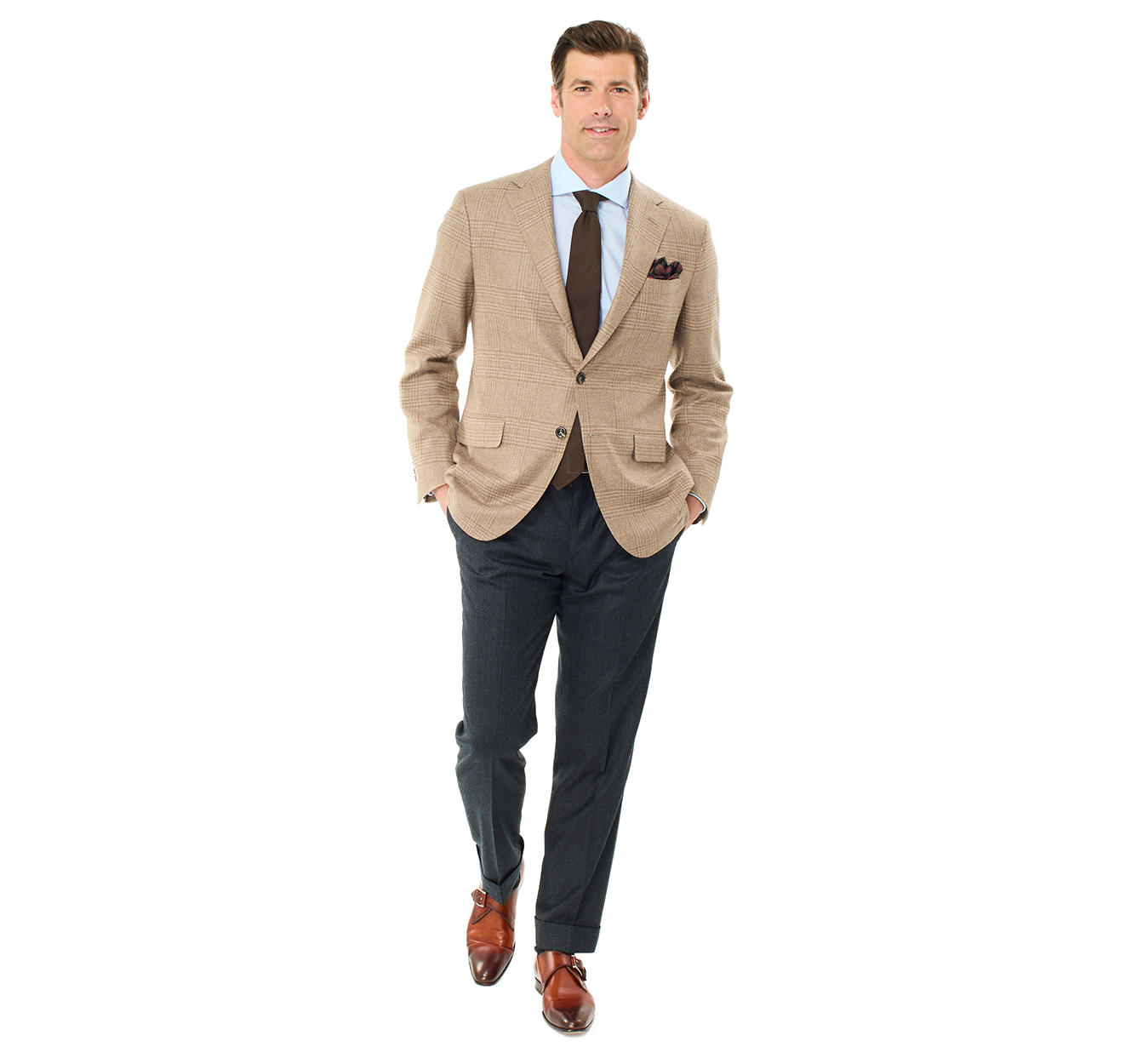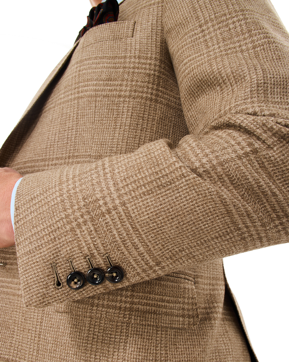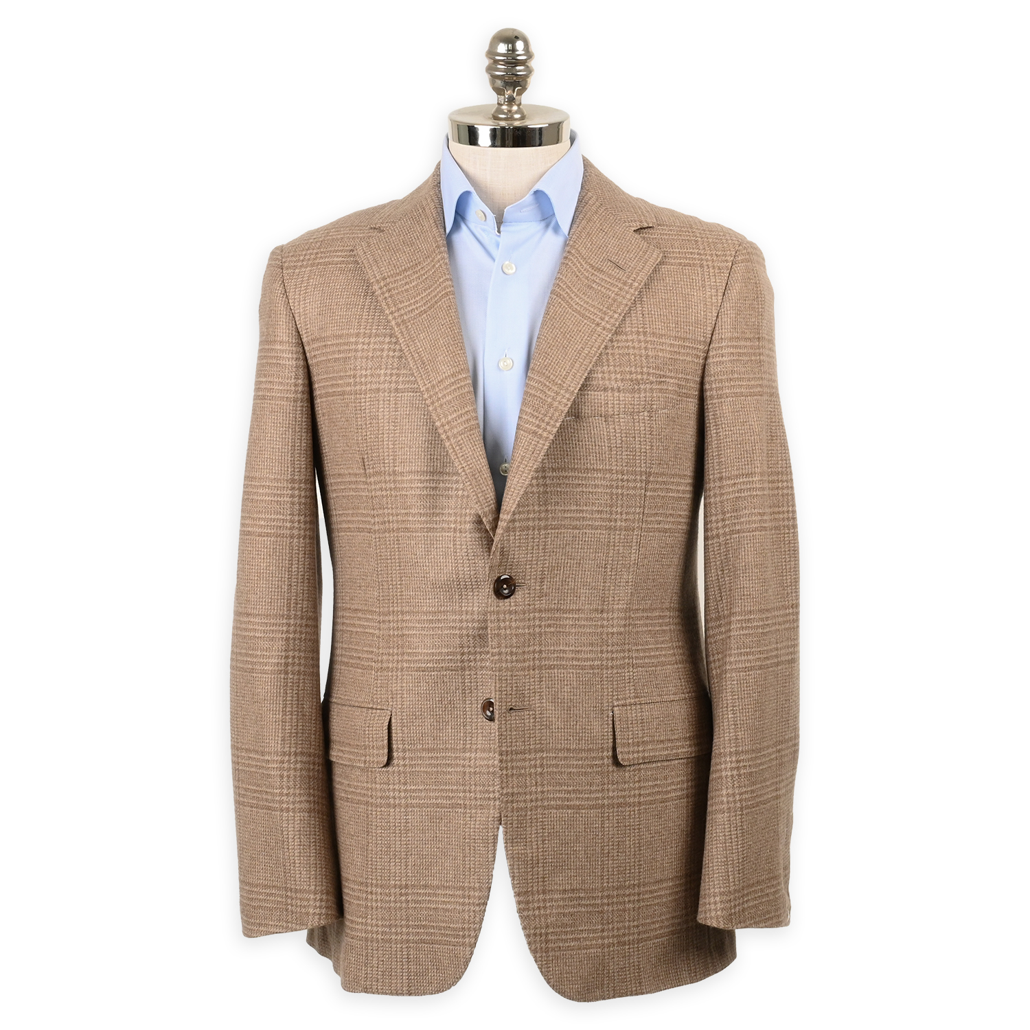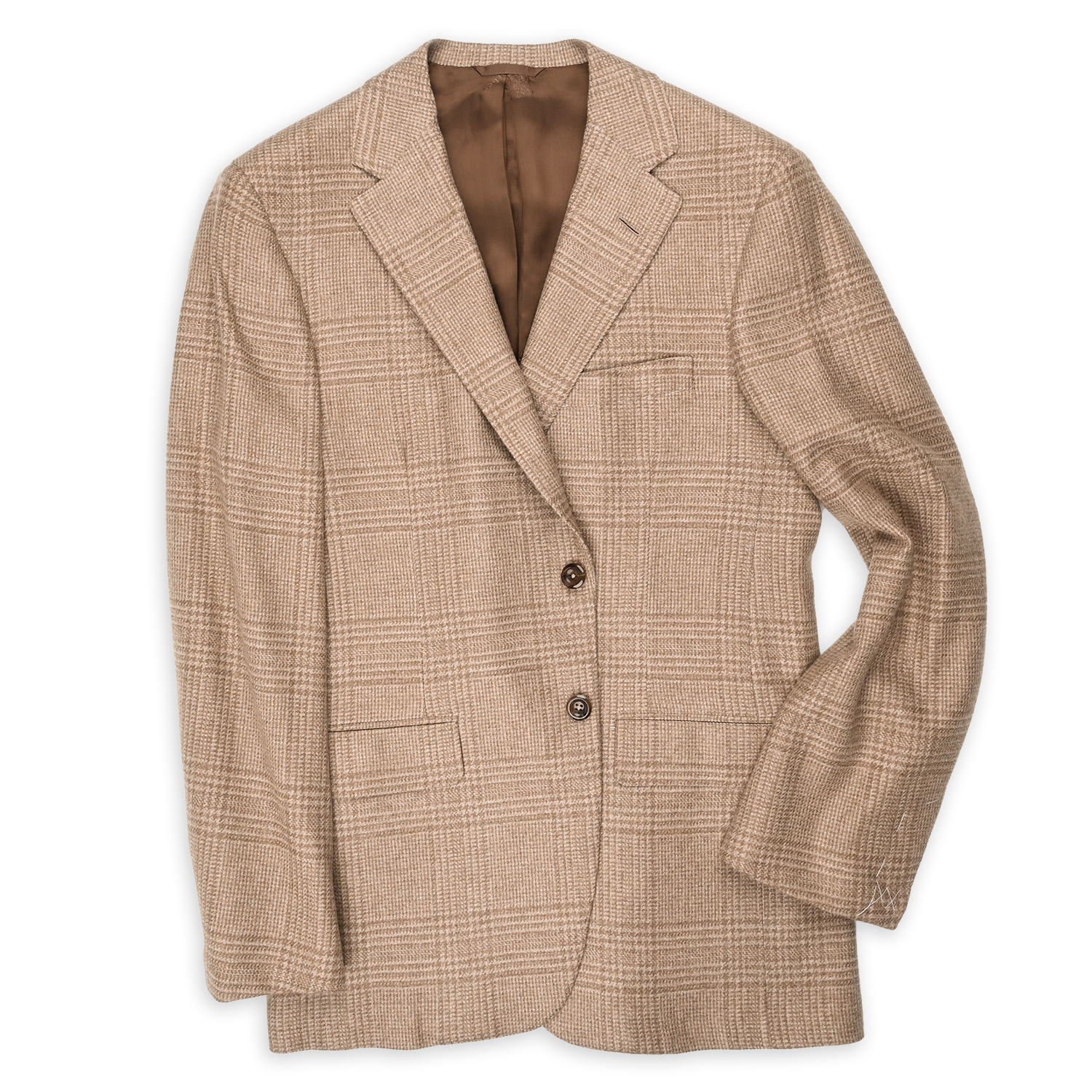 Handmade in Chicago from 100% cashmere, the Oxxford Clothes Archer sport coat exemplifies American luxury tailoring. Rendered in a refined tan and brown Prince of Wales check, it offers exceptional softness, a graceful drape, and timeless sophistication. With its classic pattern and artisanal construction, this sport coat is designed for the discerning gentleman who values heritage, craftsmanship, and enduring style.