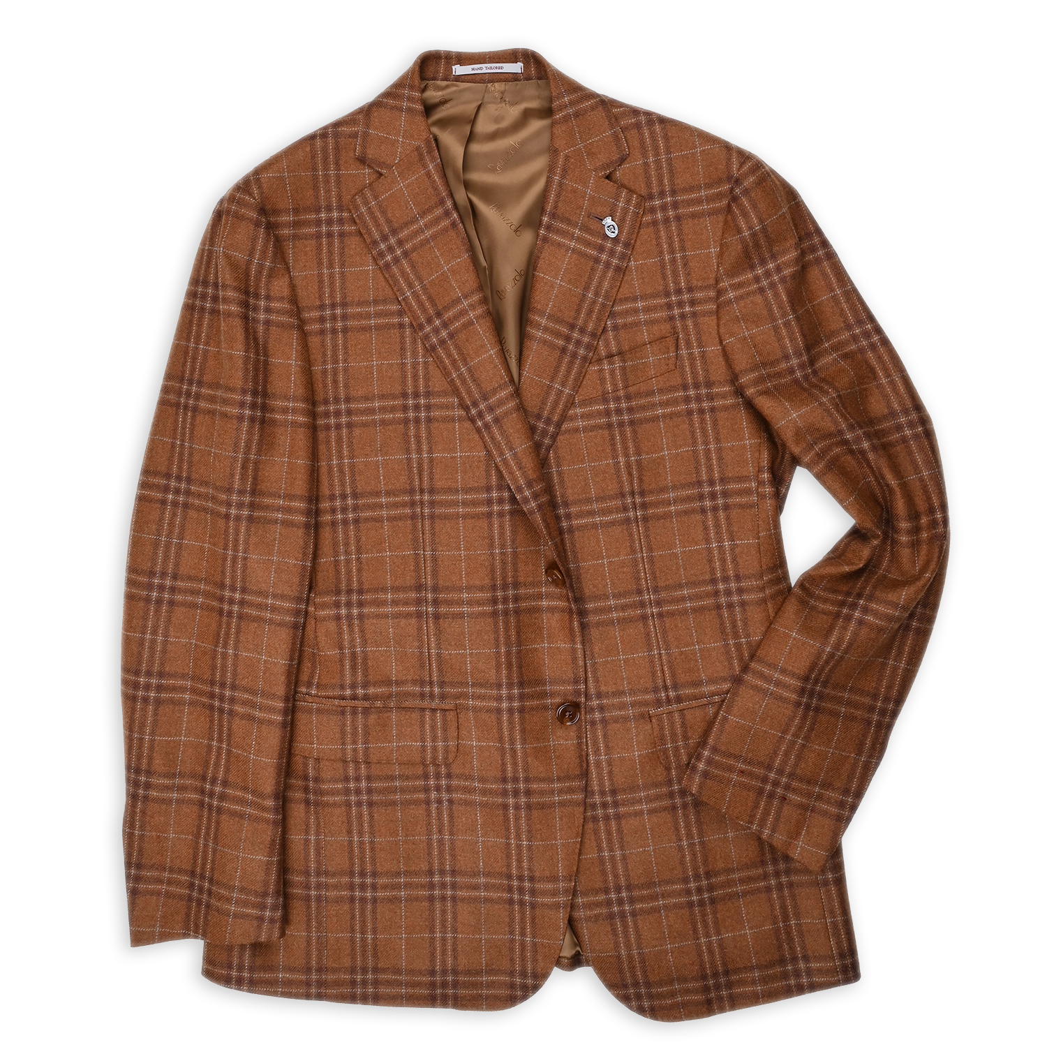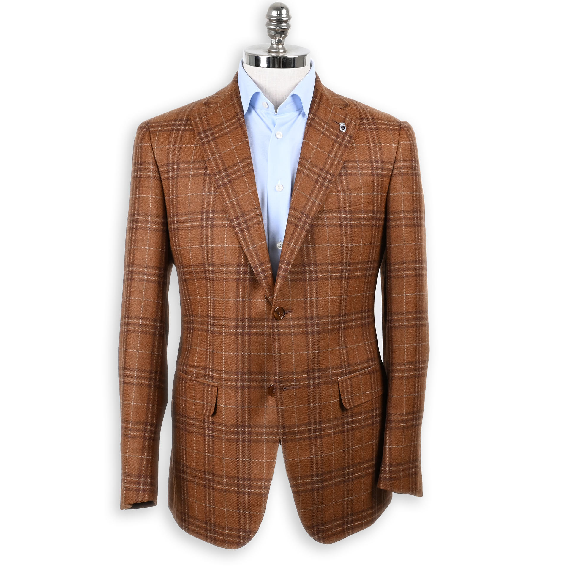 This Ravazzolo sport coat showcases rich autumnal elegance in a rust and dark brown plaid. Hand tailored in Italy from a luxurious blend of 93% wool and 7% cashmere, it offers a soft, refined drape with exceptional warmth and comfort. Fully lined with 100% cupro, it provides a smooth, breathable interior that enhances wearability. A testament to Ravazzolo’s artisanal craftsmanship, this coat embodies timeless sophistication and distinctive style for the discerning gentleman.