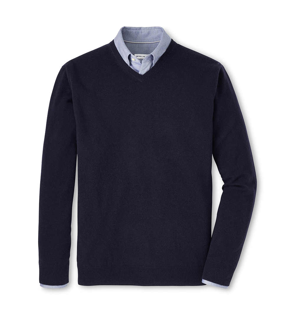 This Peter Millar Crown Heritage V-neck sweater embodies timeless elegance and luxurious comfort. Crafted from 100% pure cashmere, it offers unmatched softness, warmth, and a refined drape. The classic V-neck design makes it a versatile wardrobe essential—perfect for layering over a dress shirt or wearing on its own for a polished, sophisticated look. Combining exceptional quality with Peter Millar’s signature craftsmanship, this sweater represents the pinnacle of refined, understated style.