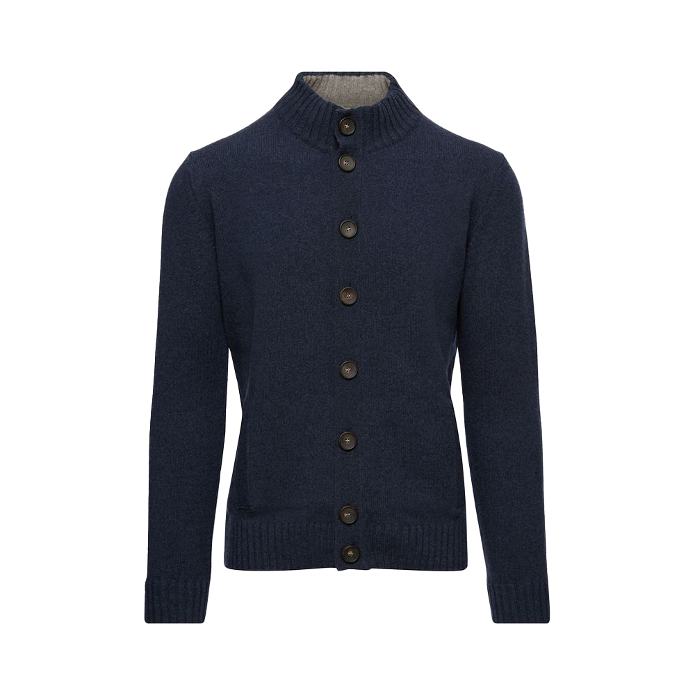 This Emanuel Berg sweater is a luxurious expression of refined comfort and timeless style. Crafted from a premium blend of 70% Merino wool and 30% cashmere, it offers exceptional softness, warmth, and a beautifully smooth hand. The rich dark blue hue adds depth and versatility, making it an ideal piece for both casual sophistication and elevated layering. Finished with a full button-front design and ribbed collar and cuffs, it reflects Emanuel Berg’s commitment to impeccable craftsmanship and modern elegance.