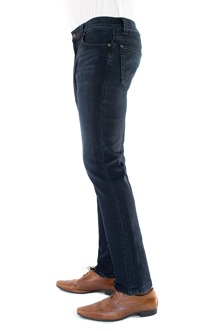 This slim tapered body carries a magnificently dark indigo hue as well as a performance stretch denim that guarantees total comfort and mobility.